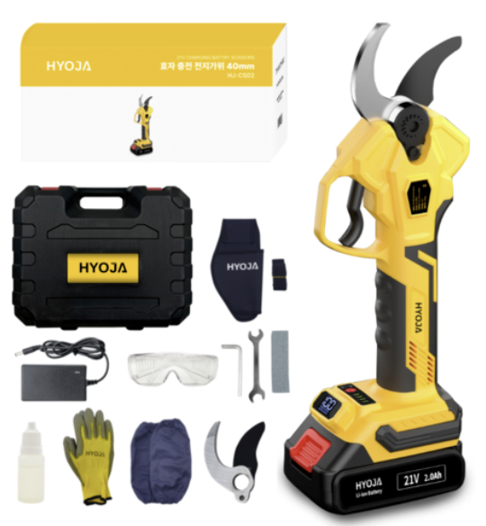 - 효자 전기 전동 충전 전지가위는 고출력 및 고효율의 21V 브러시리스 모터를 사용하여 높은 파워로 작업 효율을 극대화합니다.